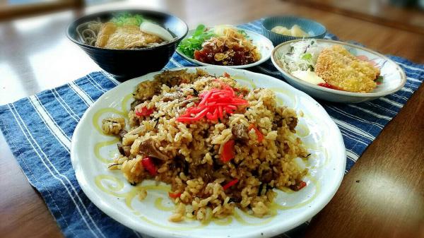 焼きうどんは、ソースと醤油半々の濃い味です。