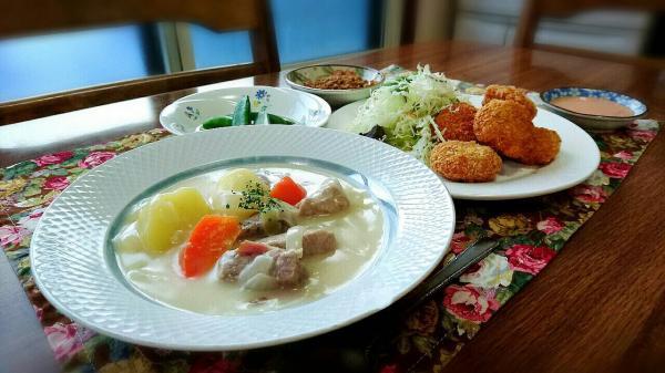 今日のメインは、クリームシチューです。