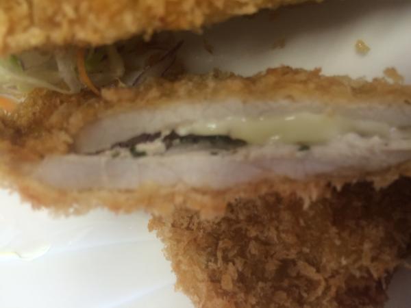 ロース豚カツ真ん中にチーズ、ハーブのソース