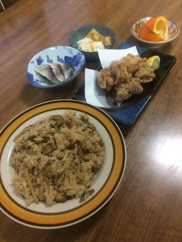 ■帆立ご飯・鶏塩唐揚げ・シメサバ胡瓜和え