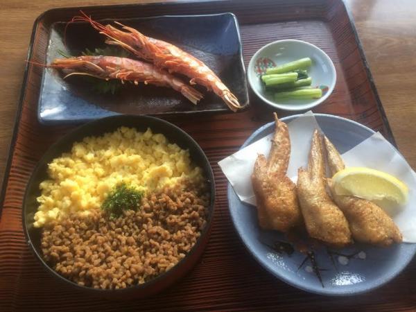 ■優しいお味の そぼろ丼 海老塩焼き 手羽先など
