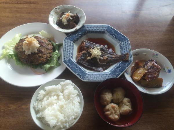 にらの和風ハンバーグおろしポン酢 真鰈の煮付け