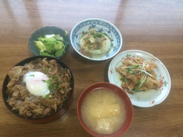 ■スタミナ豚丼 温玉添え 鱈から揚げポン酢ソースなど