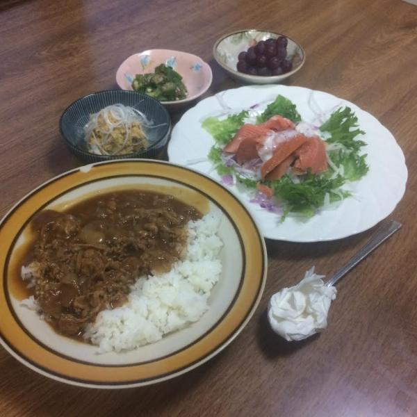 ■お肉たくさんの ハヤシライス スモークサーモンのサラダ