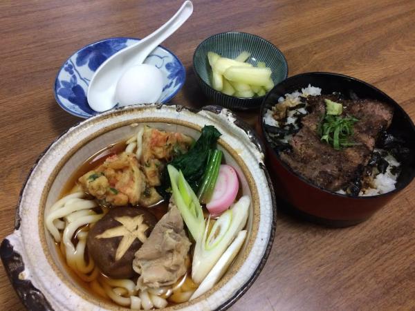 ■ステーキ丼と鍋焼きうどんで暖かく^^