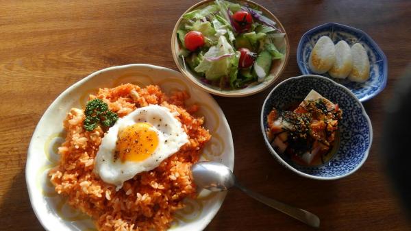 チキンライスがに目玉焼きを乗せました