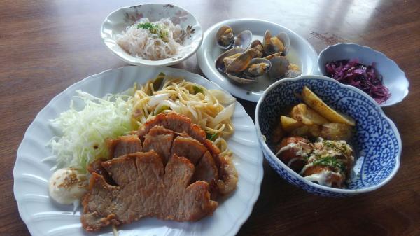 ■豚ロースの生姜焼きがメインです そしてアサリの白ワイン蒸し