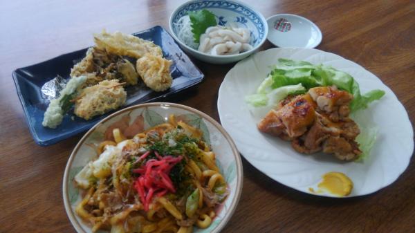 今日のメインはいなり寿司とうどんです