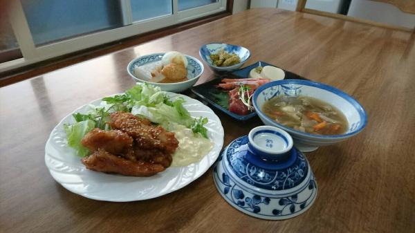 本日はたっぷりの伊達野菜を使い 揚げ鶏を甘酢にくぐらせてタルタルソースを添えて