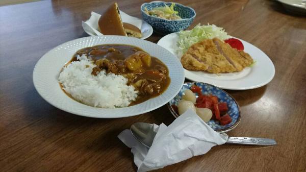 お好みでカツカレーもいいかと思います。マカロニサラダはツナの絡みが良いクルルで作ってあります。
