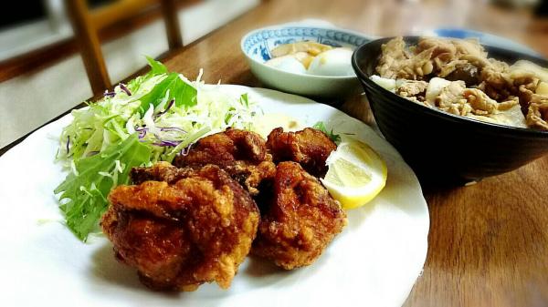 本日の鶏唐揚げは、生姜、にんにく、醤油をきかせた