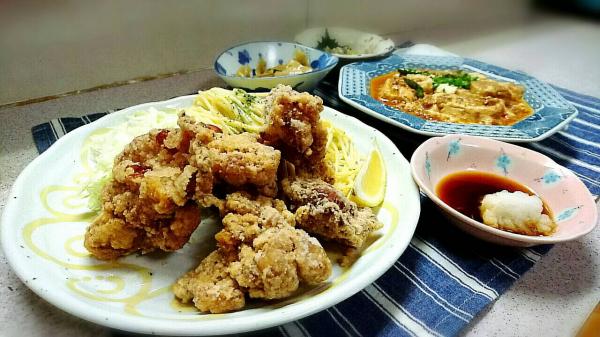 鶏モモ唐揚げ おろしポン酢 麻婆豆腐