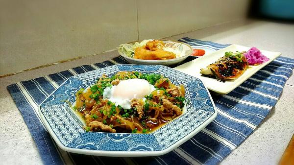 豚肉と白滝のすき焼き風 鯖の胡麻味噌焼き