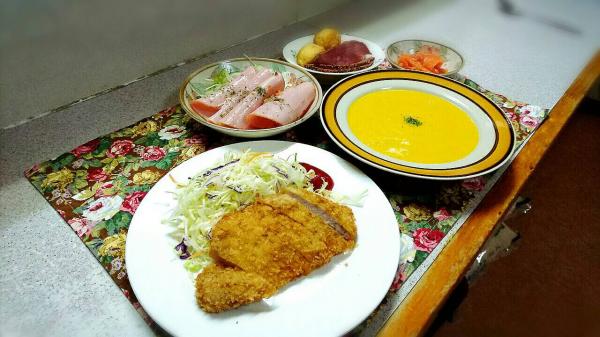 本日は冬至なので、汁物をかぼちゃのポタージュにしました。