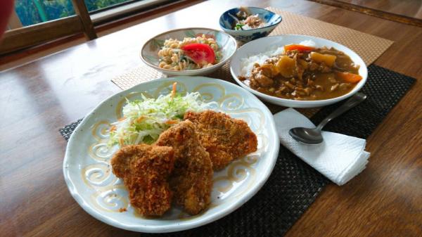 とんかつは、豚肩ロースの一口カツを一人三枚です。