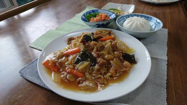 今日のメインはあんかけ焼きそばです。