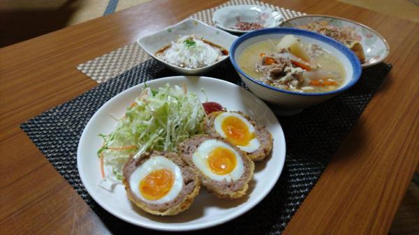 ■✩今日は豚汁に和風スコッチエッグなどです✩