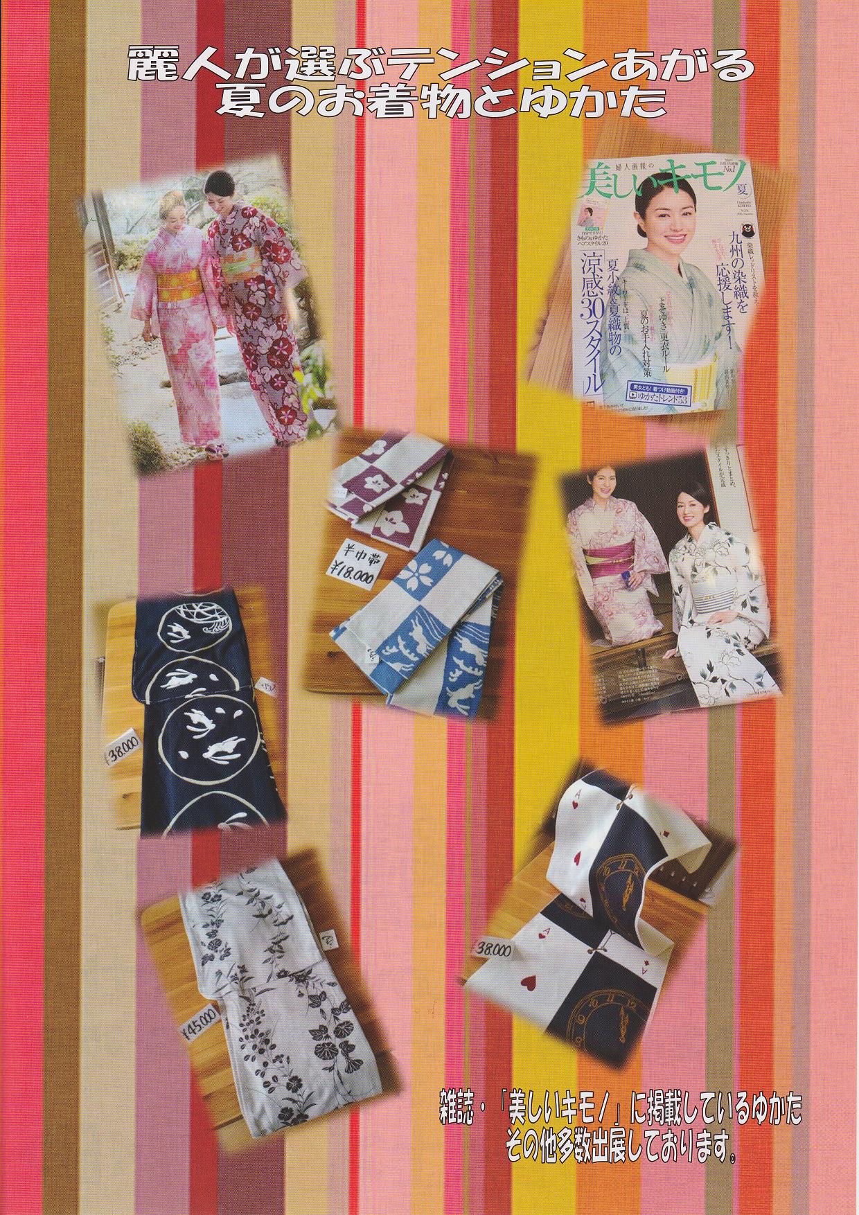 ゆかたは3500円~500000円くらいまで品が揃っております・・。