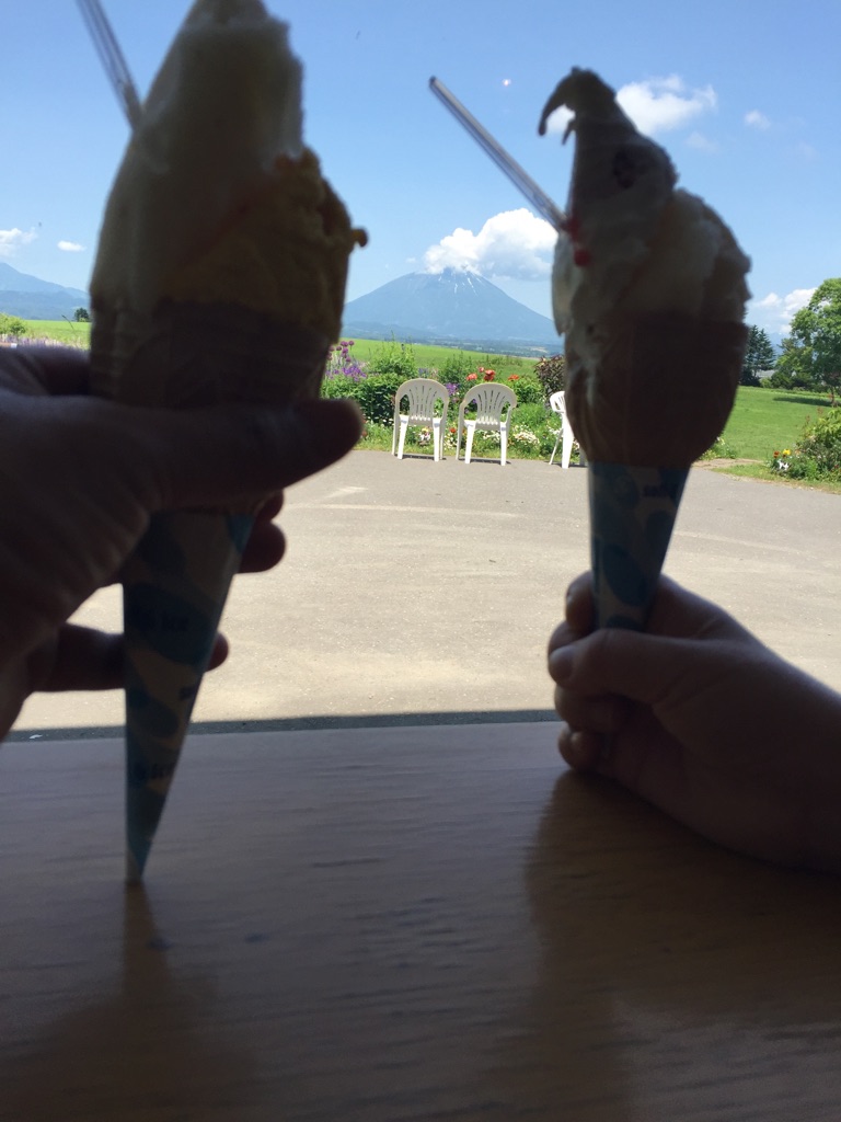 羊蹄山を眺めながら食べるジェラードは最高ですね・・。