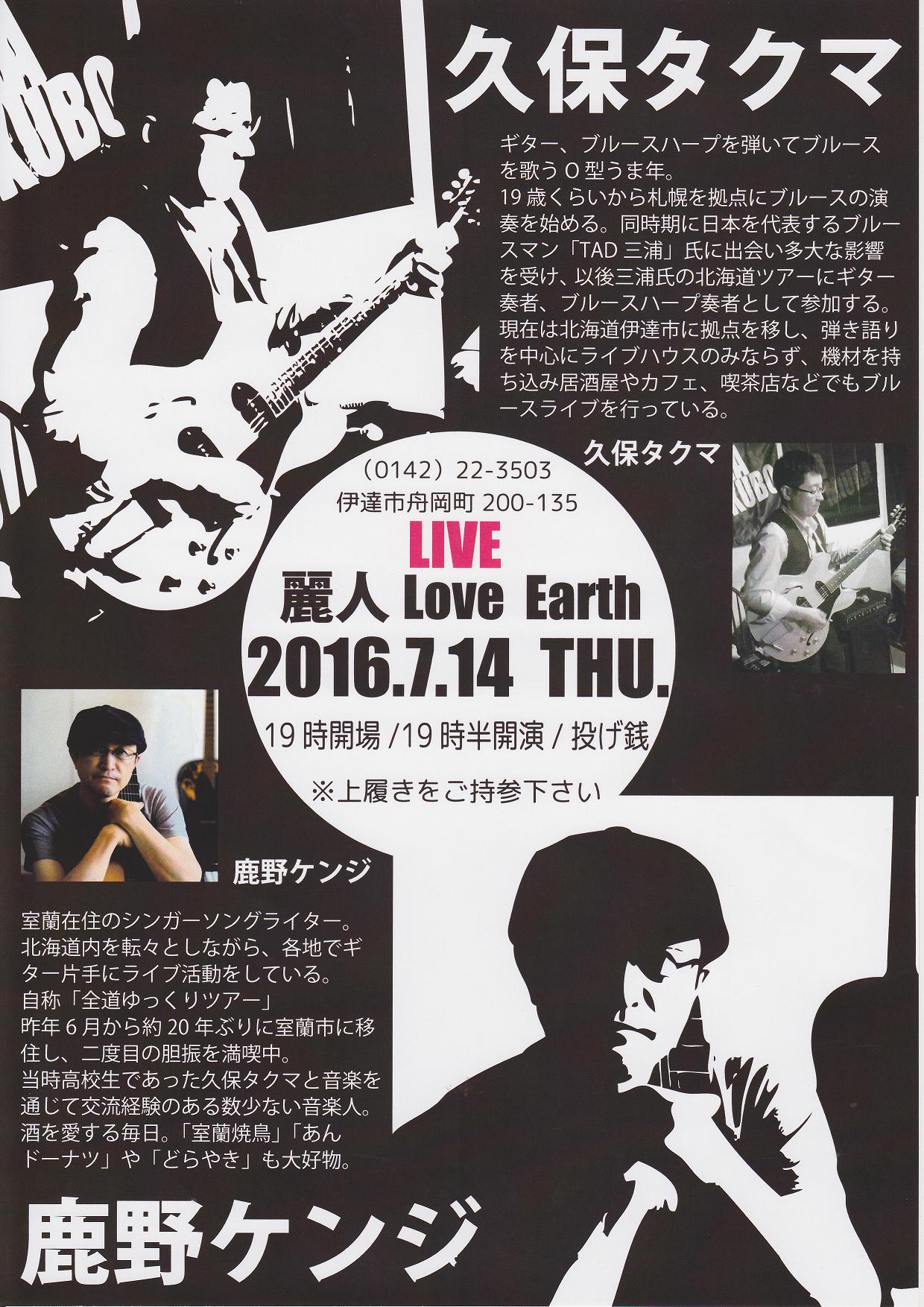 たくまくんは去年3回ほど麗人でTAD三浦氏とブルースLIVEをしていただけました・・。