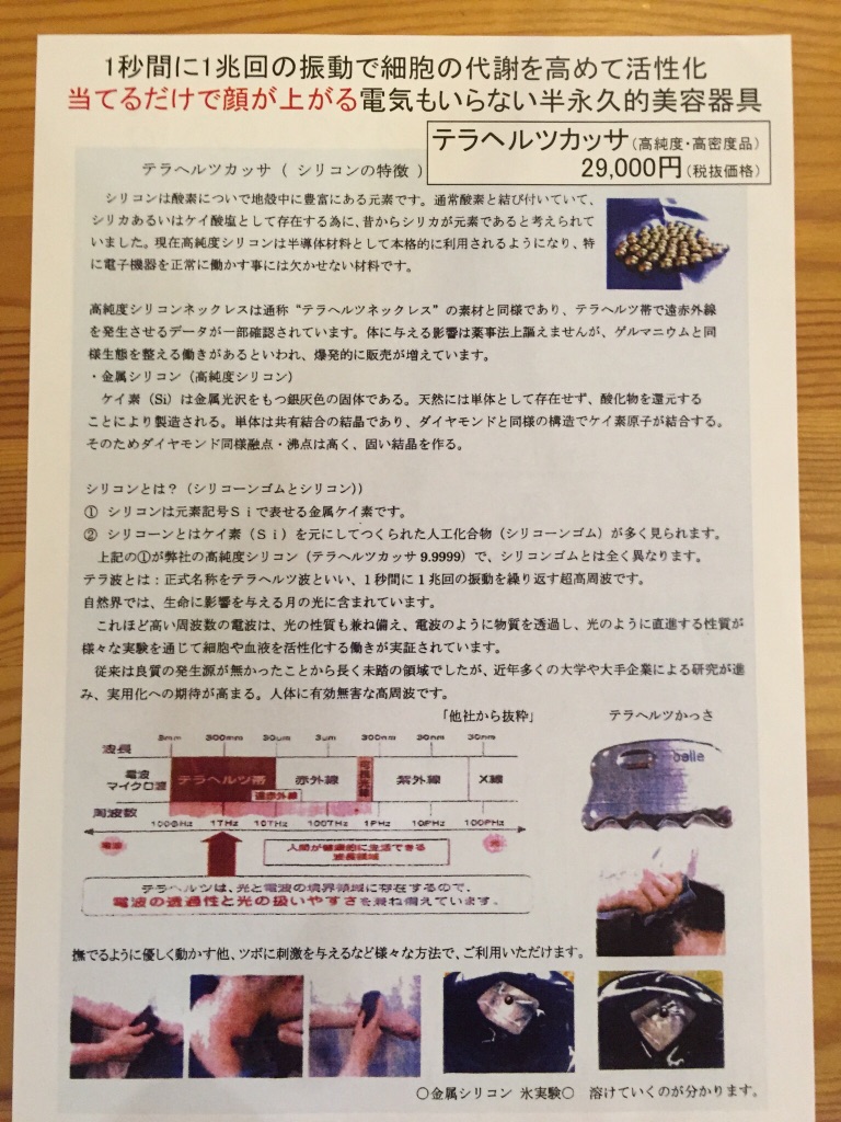 実はこのテラヘルツかっさの模造品がすでにでおりますので、そちらで満足される方はそちらをご購入ください。