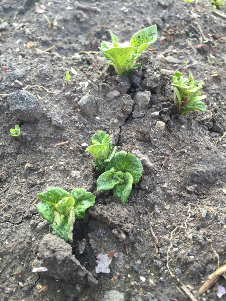5月の初めに植えたジャガイモが芽吹きました・・。