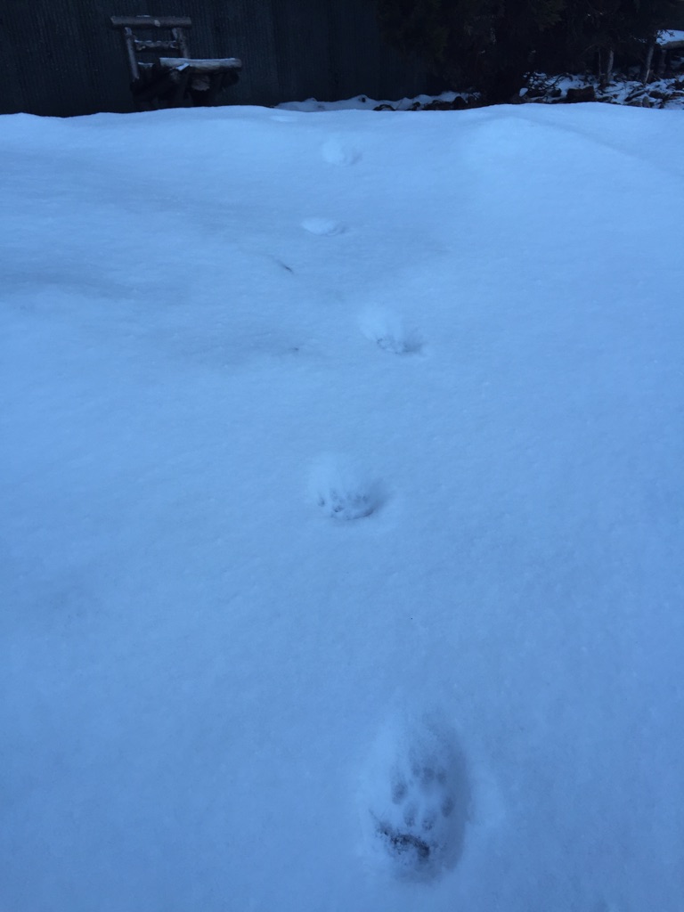 この寒空に野良ネコちゃんの軌跡が残っていた