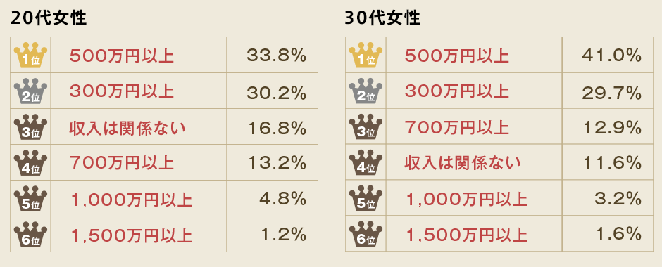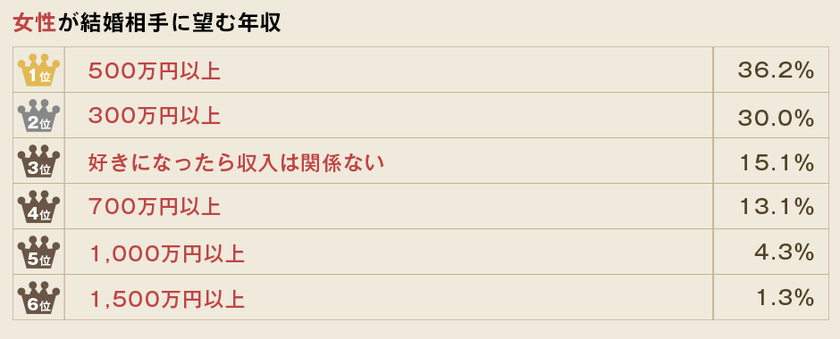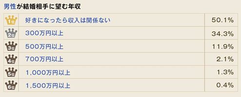 女性が男性に求める年収の結果です・・。見たことがある方もいるかもしれませんが、ご覧ください。