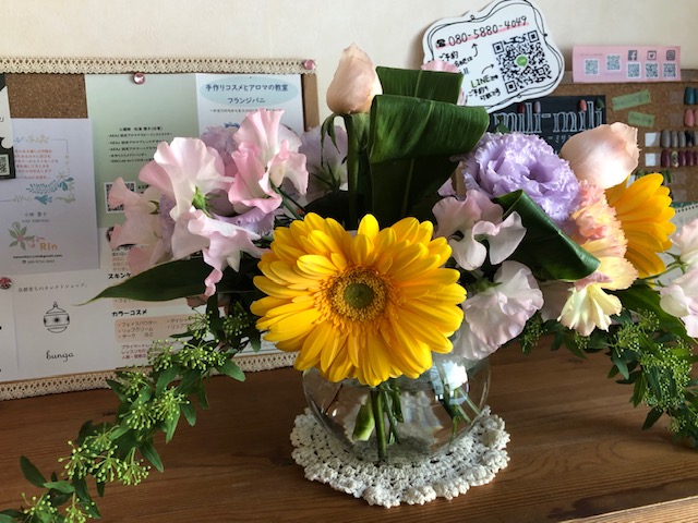 そうそう!!久しぶりに玄関にお花を飾りました。