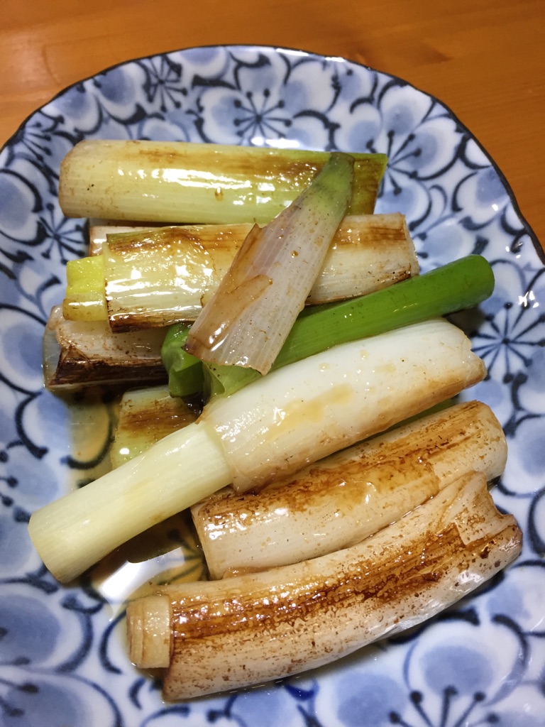 ぶつ切りにした、ネギをフライパンで炒めるだけ