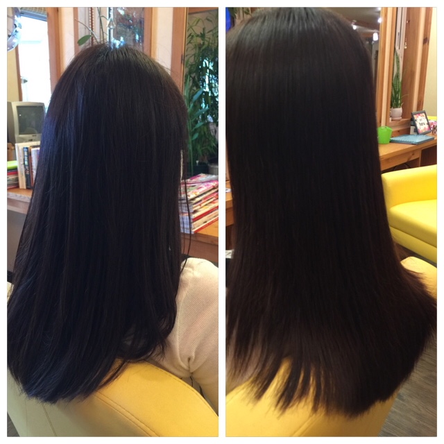 <ちなみにアフターのお写真は一切ブロー仕上げ アイロン仕上げはしておりません。乾かしただけです。>