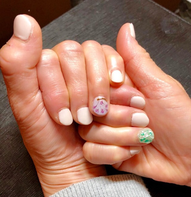 親指の押し花が素敵です。