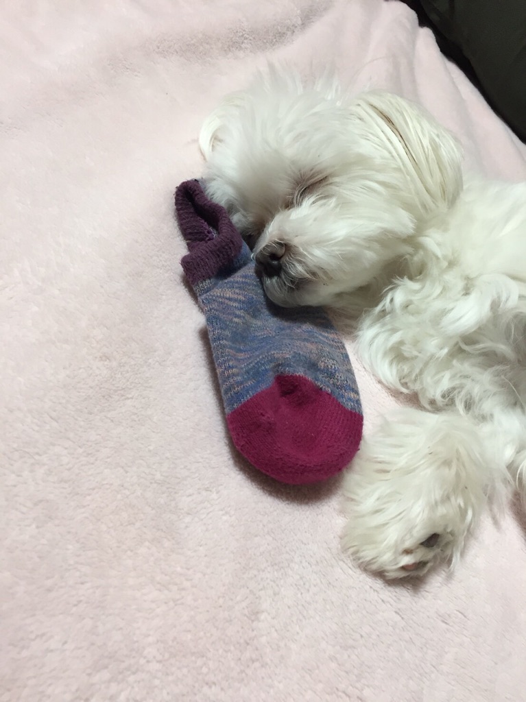 愛犬のらぶも靴下で遊んでそのまま寝てしまいました。