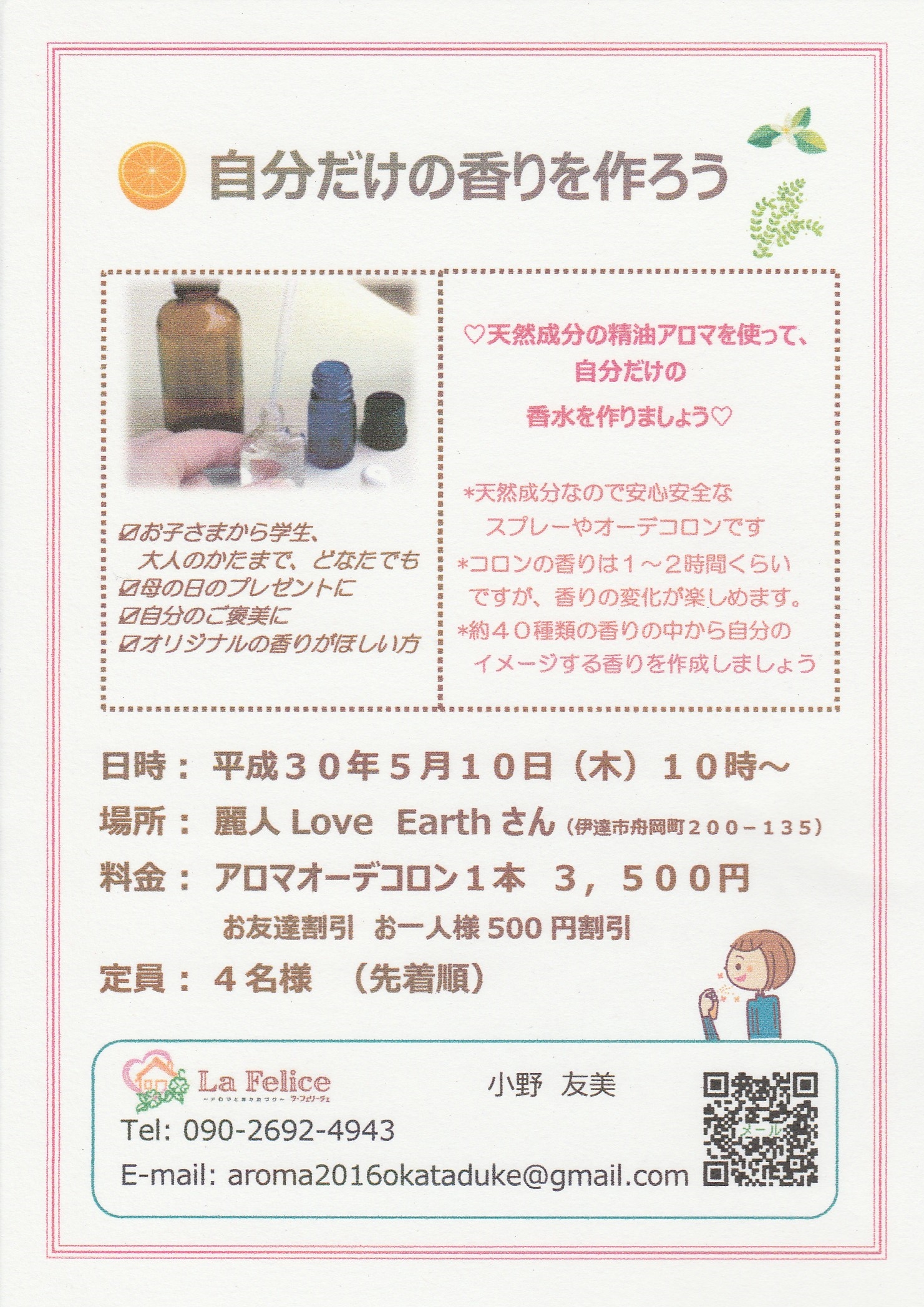 そのほかにアロマセラピスト等々自分の特技を活かした方を応援しております。