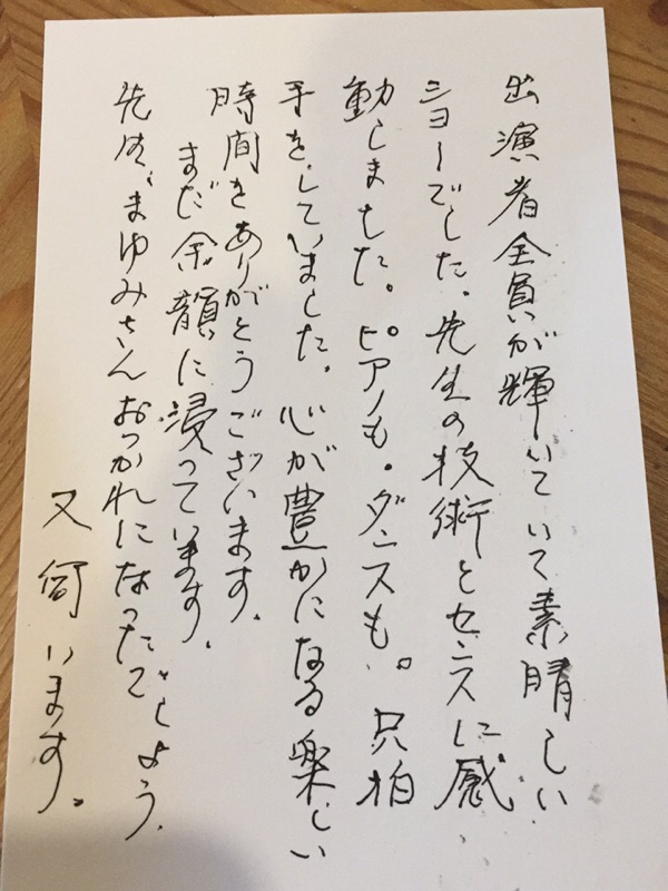 ショー当日をとても楽しみにしていましたので、見終わってからの感想を書いて来て下さったのです。