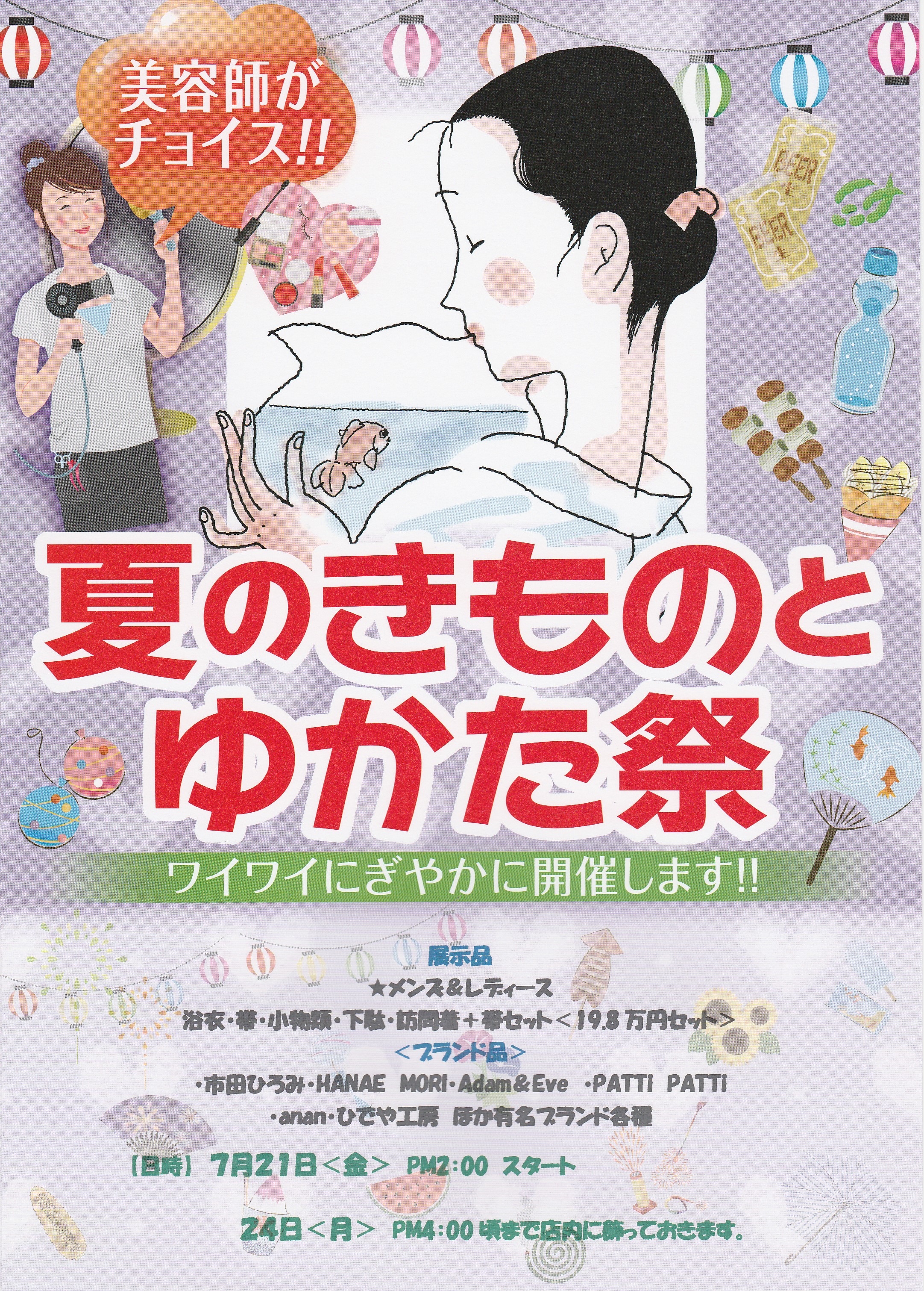 今月は、浴衣祭りや大雄寺さんでのミニファッションショーなどの予定が入っています。