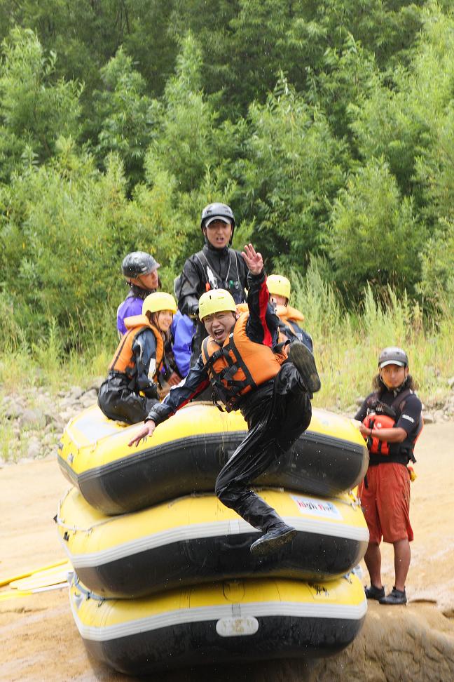 途中、水の緩やかなところで水かけ合戦が始まります。オールを使っての水かけ合戦は結構、マジになりますよ~・・。