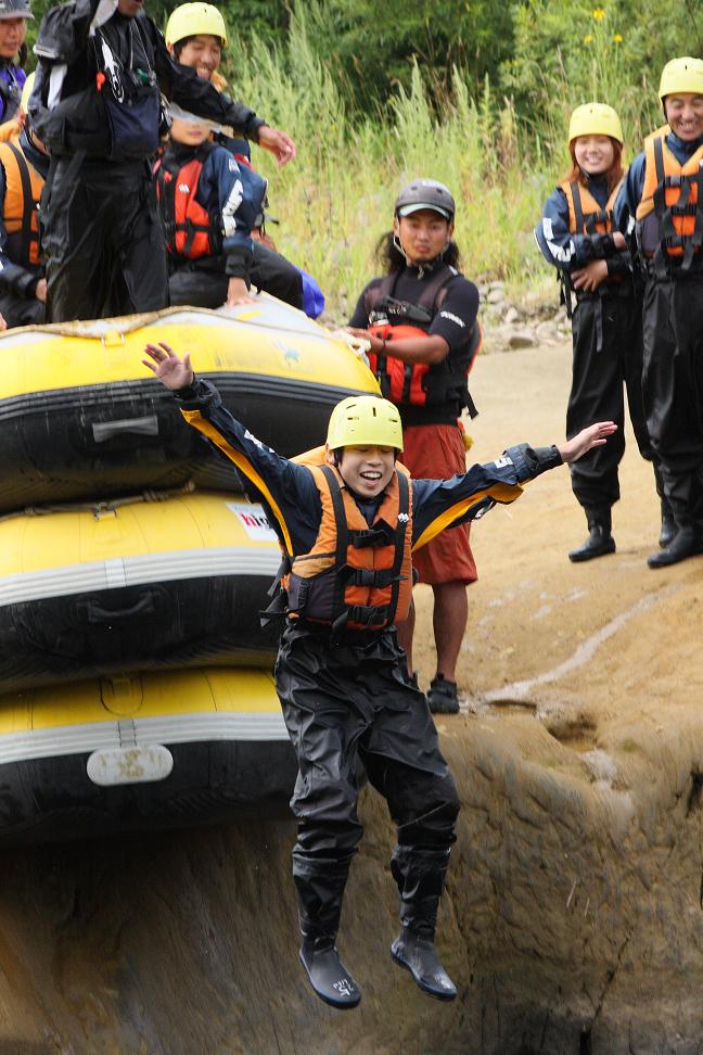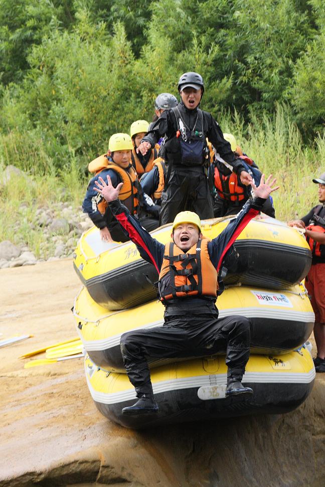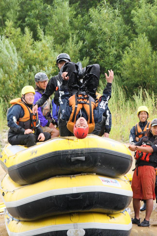 この写真は家族でニセコに行った際のラフティングをしているとき、途中、ダイビング大会が始まり飛び込んだ時の写真です。