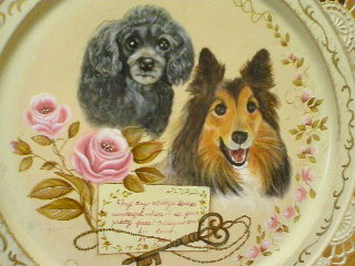 N様のご希望で、ブリキのプレートに描かせて頂きました。まわりの薔薇のトールが二匹を優しく包んでいて、あたたかい作品に仕上がっています☆