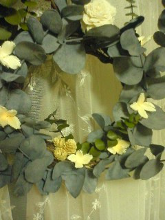 コメントありがとうございます。ユーカリの香りはちょっと独特です。でも葉っぱの丸い感じがすきです。オイルなどは色々な効用があるみたいですね。可愛いリースになりましたので是非見にいらしてくださいね。アレンジを変えて又作りますので(^−^)