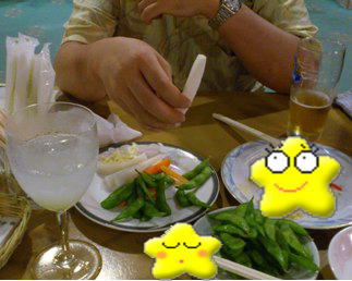 暑い日でしたのでビールは美味いし、野菜スティックは新鮮でいくらでも食べられそう。