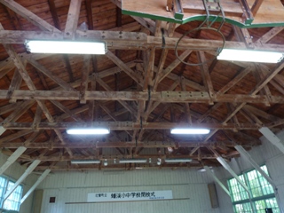 会場である 「旧 蟠渓小中学校」 の体育館の天井です。