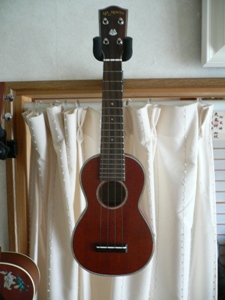 続いてのウクレレは・・・同じくリビングの戸枠にクリップでぶら下がっているウクレレです。