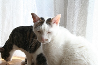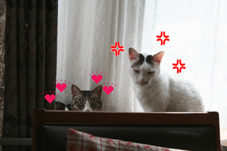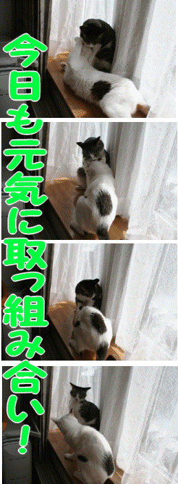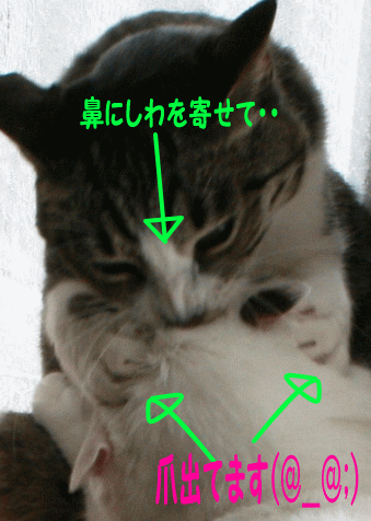 上の二枚目の画像の拡大図です。元気の頭を押さえて噛みつくあじゅ・・・。