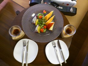 お部屋に案内していただき部屋着に着替えていると、届いたウエルカムフルーツでございます。