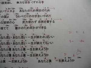 おそらく・・・いや、きっと、ソロ演奏する曲ではないと思うので、取りあえずの対応として弾き語り用の 「コード譜」 を起こしています。