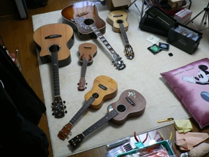 ほかに、 Madam.Fukuda のスタンダードと、私のギターやUkuleleを数台・・・二日半がかりで十数台のメンテをしました。