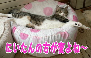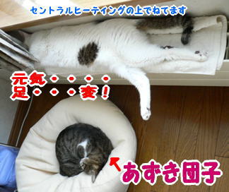 あずきも時々のってますが、元気ほど器用ではありませんので「香箱座り」をしています。