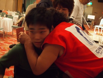 K 君にハグしてくれた勝さん。 K 君照れちゃったかな?・・・笑