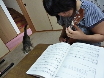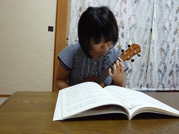 練習といっても、ウクレレを弾き始めて、もう 1 年も経過する Ms. Azusa ですから、細かいことを教えるなんてことはほとんどありません。